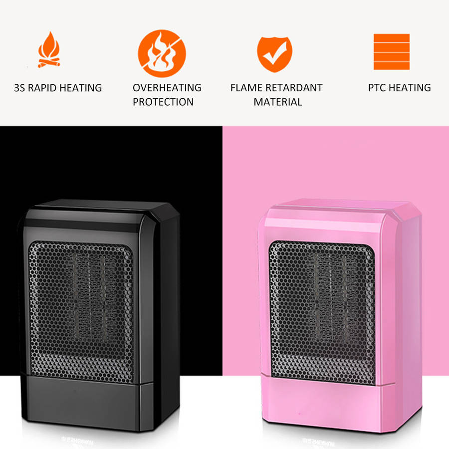 Package Included: 1 x Air Heater 1 x USB Cable ? Specifications: Color: Black, Pink Material: ABS (Acrylonitrile Butadiene Styrene) Voltage: AC 220V Plug: US plug (sent with an adapter according to your country) Power: 500W Size: Approx. 10x7.5x15.5cm/ 3.94x2.95x6.10'' ? Features: -In the cold winter, bring warmth to you indoors. -Personal heating is your best companion to keep you warm in this winter! -Environmental protection, power saving, safety, it provides hot wind. -PTC ceramic heating element which has the advantages of fast heating, high conversion rate -Portable, use it in the living room, the bedroom, the study room, the kitchen, the office or wherever you are cold. -Elegant and exquisite appearance also makes it an excellent decoration on the desk.