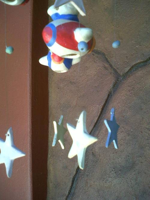 Space scene Kiddies Chimes Unfortunatly one star point is missing but otherwise still looks great in a baby boys room , Makes nice sounds .