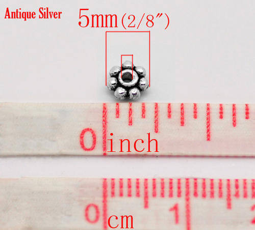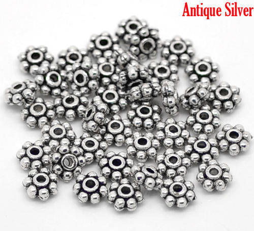 SPACER BEADS - ANTIQUE SILVER - DAISY- 6mm - SOLD PER PACK OF 20