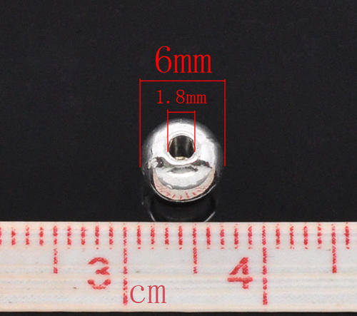 SPACER BEADS - SILVER PLATED - SMOOTH ROUND - 6mm - SOLD PER PACK OF 10