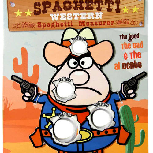 This quirky measurer features a spunky cowboy who has been shot in all the right places to let you know just how much pasta would serve the appetites of one, two, three, or four people satisfactorily.