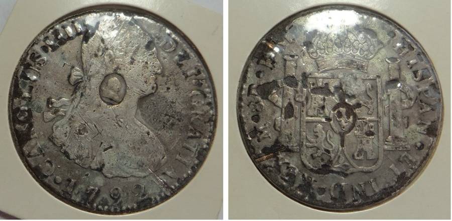 Spain: Carolus IIII Silver Piece of Eight (8 Reales) of 1792 (Counter-stamped King George III)