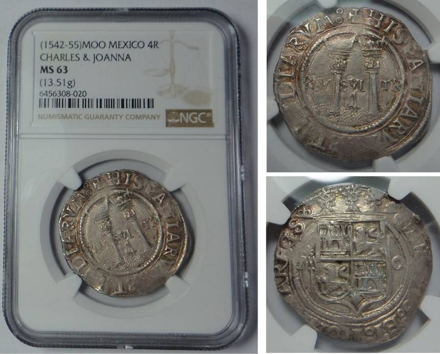 Spain (Mexico) Charles & Joanna 4 Reales (1542-1555) NGC MS63