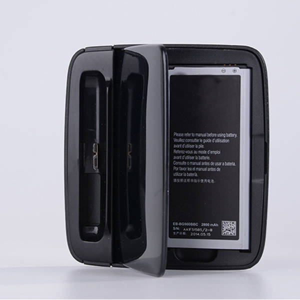 Features: * Portable andlightweight, easy to use and carry, convenient for travelers and business users, * Dual charging slot support charge your backup battery and phone at the same time. * Synchronize data and charge at the same time when connect with PC, computer.Descriptions: Color :Black Input: 5.2V-2.0A; 5.0V-500mA Output: 4.4V-1.7A; 4.4v-450mA Weight: Approx. 80g Compatible with: Samsung Galaxy S5 i9600 or Samsung Galaxy Note3 N9000 Package included:1* Dual Battery Phone Dock Charger