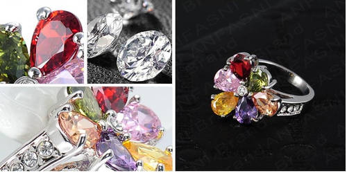 SPARKLING WHITE GOLD PLATED FLORAL SWAROVSKI CRYSTAL RING SIZE 7/17.3MM/O