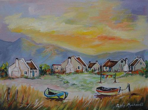 SPECIAL !!! Acrylic Painting by Patty Mynhardt "Fishing Village Sunset"