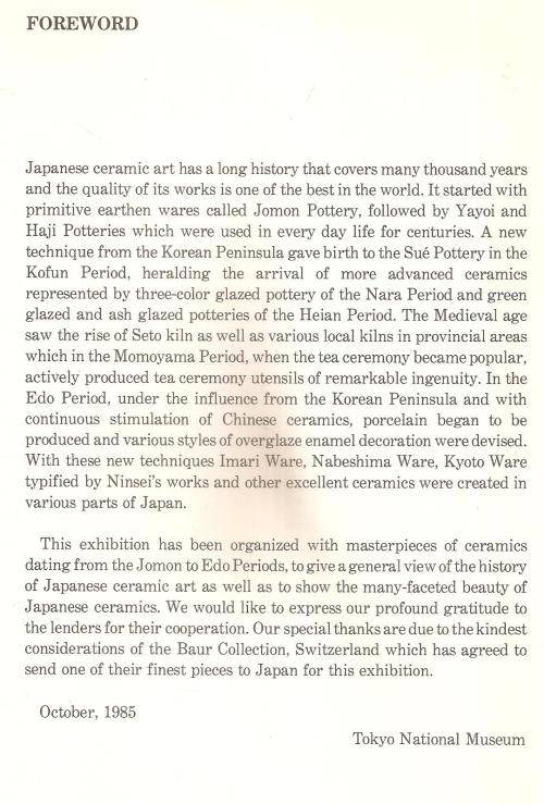 Special Exhibition Japanese Ceramics 1985 - Tokyo National Museum