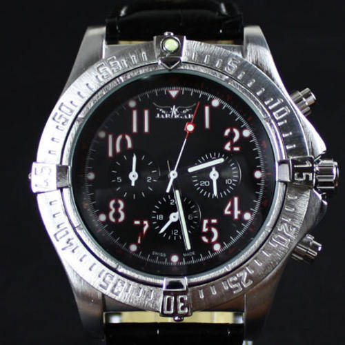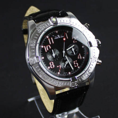 MENS 6 HANDS BLACK AUTOMATIC MECHANICAL WRIST WATCH