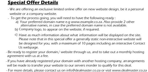 R65.00 Standard shipping applies to orders under R100.00, in most areas in South Africa. R35.00 Standard shipping applies to orders over R100.00. Some areas may attract a surcharge surcharge. This will be calculated at checkout if applicable.