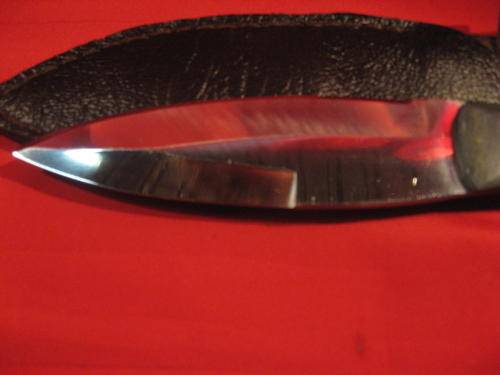 Genuine leather sheath, hand stitched. The blade is made from 420 stainless steel. Extremely sharp. Micarta handles wich is very strong and durable. The knife is 23.5cm in lentgh.