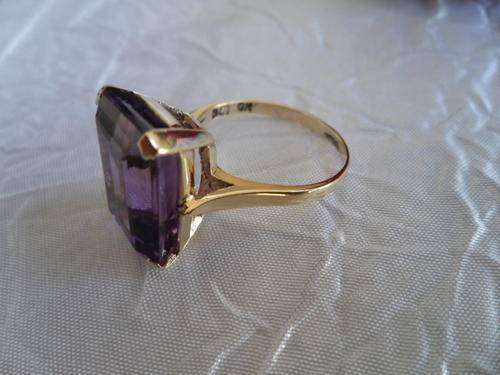 Spectacular 15ct emerald cut amythest set in 9ct gold.