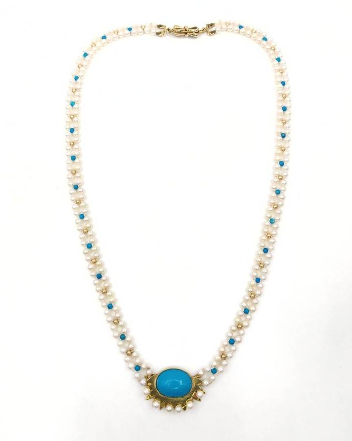 Spectacular 18ct gold turquoise & pearl double strand necklace Spectacular 18ct gold turquoise & pearl double strand necklace Spectacular 18ct gold turquoise & pearl double strand necklace Spectacular 18ct gold turquoise & pearl double strand necklace