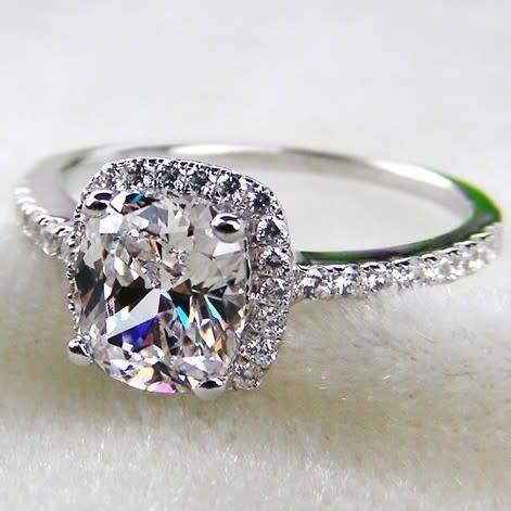 Spectacular 2 Carat Simulated Cushion Cut Diamond Ring