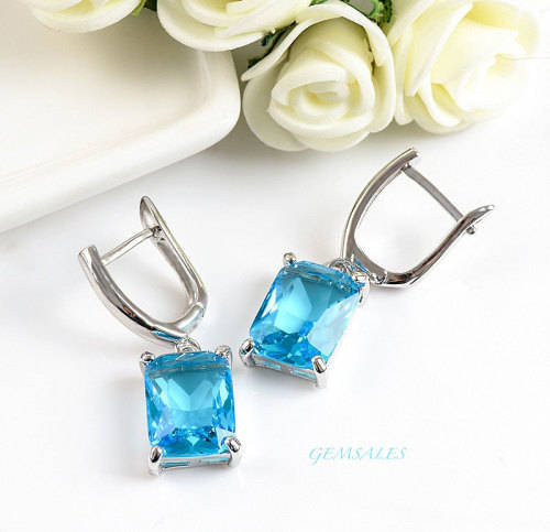 SPECTACULAR 8.48Ct EMERALD CUT AQUA SIM DIAMOND CZ EARRINGS ***S925***
