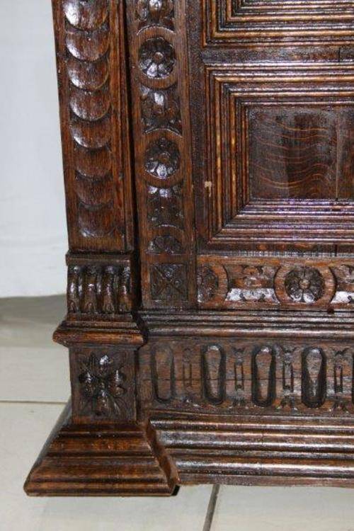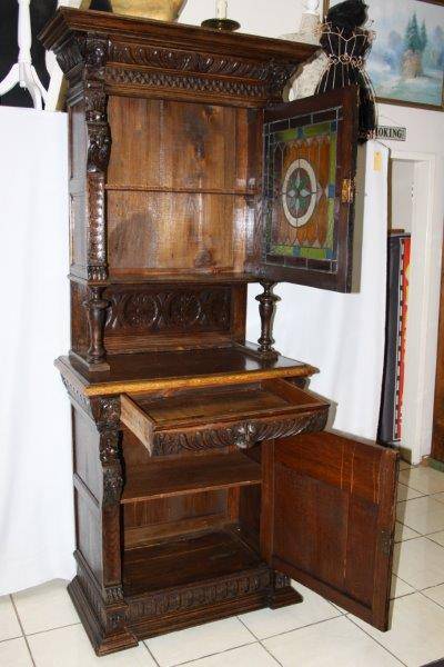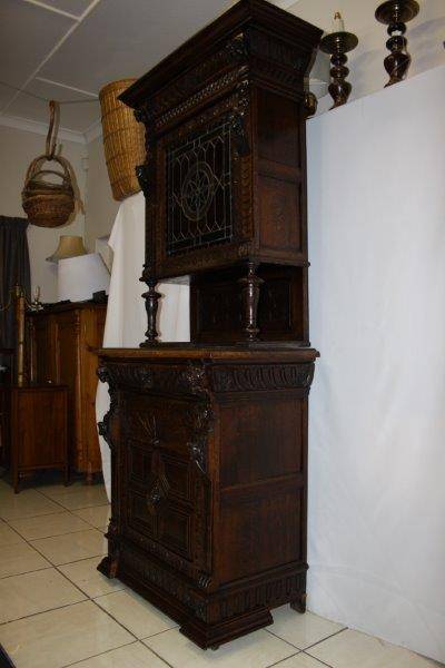 WE ARE OFFERING A SPECTACULAR HAND CARVED CABINET SECOND TO NONE! THE DETAIL IS MAGNIFICENT WITH HAND CARVED LIONS, CHERUBS AND FACES! WE WERE TOLD THE CABINET DATES BETWEEN 1820 & 1850!!! THIS CABINET IS TALL WITH AMAZING DETAIL & IN GREAT CONDITION FOR IT'S AGE! THIS IS BY FAR THE MOST UNIQUE & BEAUTIFUL CABINET WE HAVE SOLD YET, A TRULY STUNNING, RARE PIECE OF FURNITURE! THE WOOD GRAIN AND COLOUR IS MAGNIFICENT! THE SIZE OF THE CUPBOARD IS APPROXIMATELY 1000mm x 520mm x 2270mm HIGH.