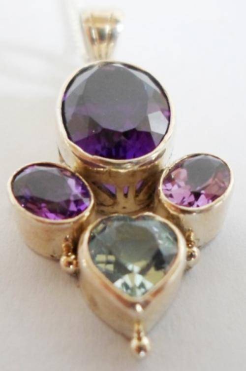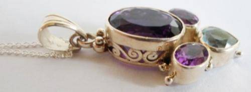 SPECTACULAR!! LARGE STERLING SILVER AMETHYST & BLUE TOPAZ PENDANT WITH 925 CHAIN