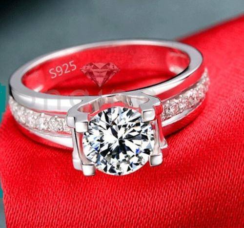 SPECTACULAR SIMULATED DIAMOND ENGAGEMENT RING * STAMPED S925* STERLING SILVER ~ SIZE R - 8 3/4