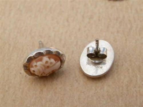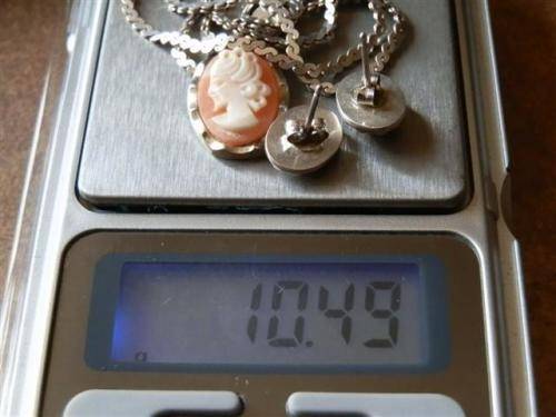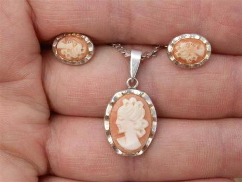 Spectacular solid sterling silver vintage cameo pendant and earring set - weight 10.49 g.