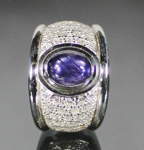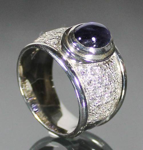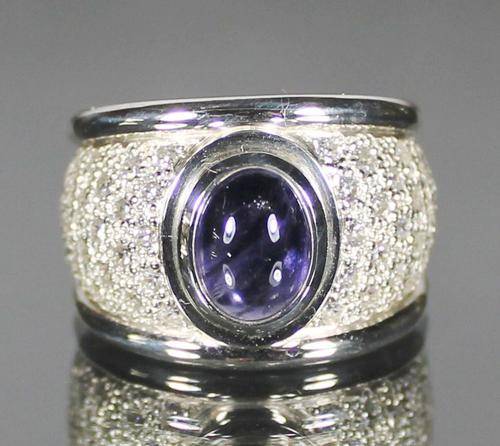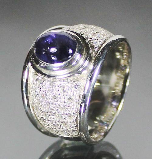 Spectacular sterling silver and iolite ring with cz. Size P 1/2. No reserve!!