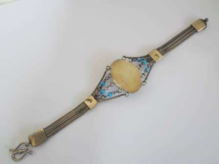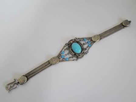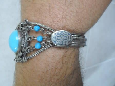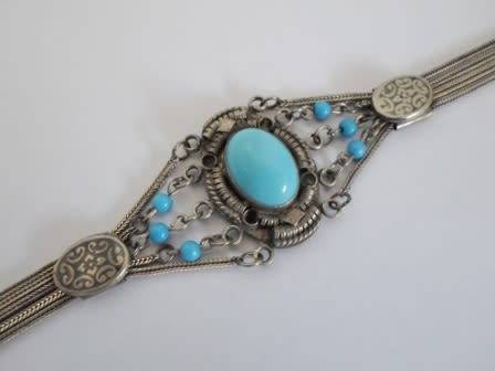 SPECTACULAR! VINTAGE 800 SILVER & TURQUOISE BRACELET 31,8g STUNNING!! WOW!!
