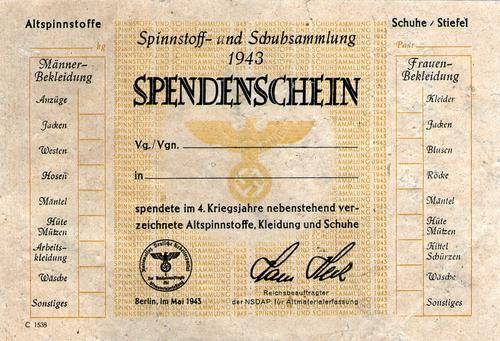 - Spendenschein 1943 - clothing assistance - a coupon rationing for shoes -