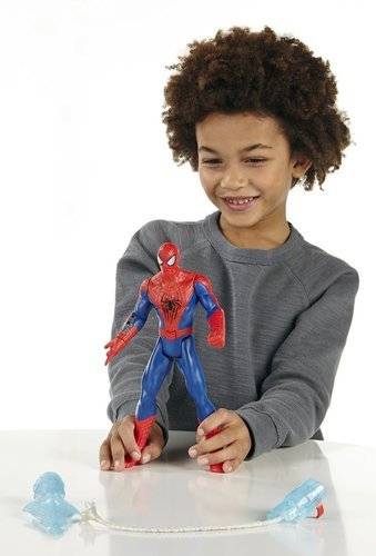 Spider-Man has some new crime-fighting tricks up his sleeve! Spidey has enhanced his abilities with a high-voltage dose of villain-blasting power and 3 modes of play. This action-packed, 10-inch Spider-Man figure features battle-activated lights, 2 different weapon accessories that attach to the figure, and more than 25 unique sounds and phrases.