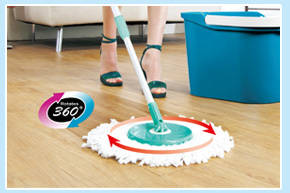 • Rinsing is easy, just dip the mop head into the bucket, with just a few pushes of the pedal, it quickly cleans and spins dry!