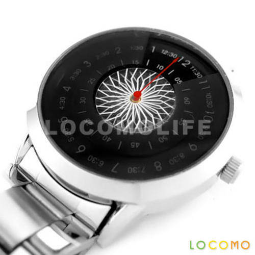 You are looking at a revolution designed stylish watch which has no hand at all! Instead of reading the hands, it tells the time by rotating the 3 concentric circular discs of hour, minute and second. As they turn, the current hour and minute will be aligned on the red line telling you the time! Bored of ordinary watch? Get it now for you and your loved one!