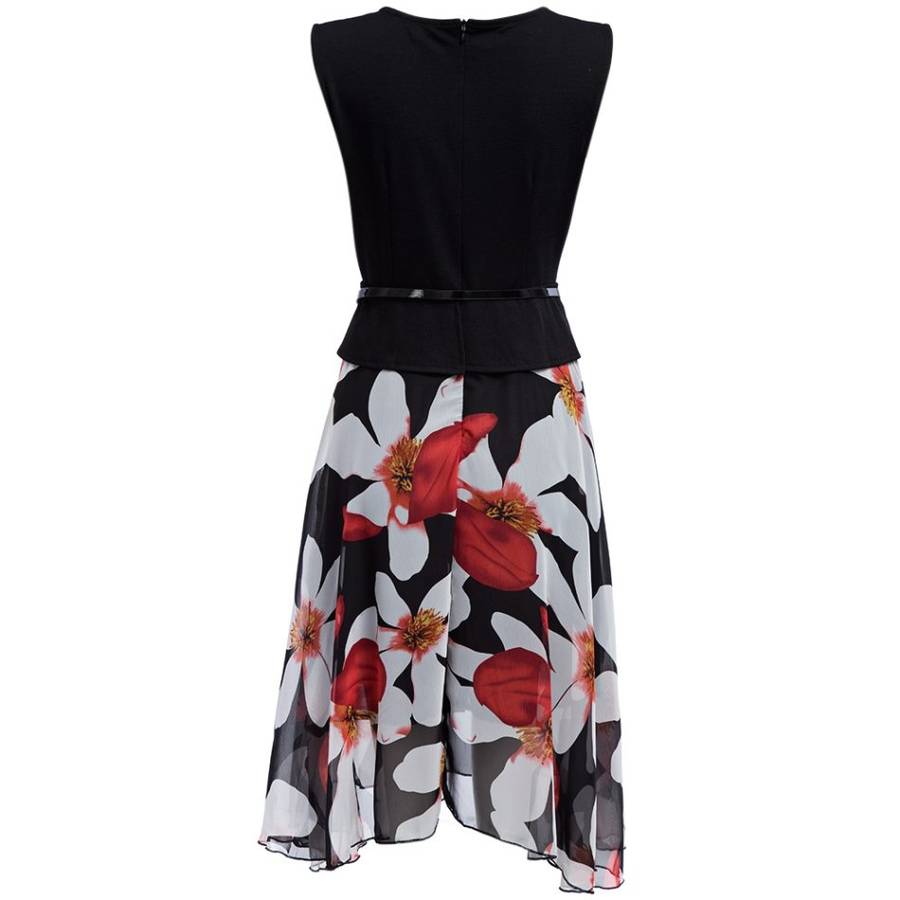 Spliced Faux Twinset Slim Waist Loose Dress with Belt for Women