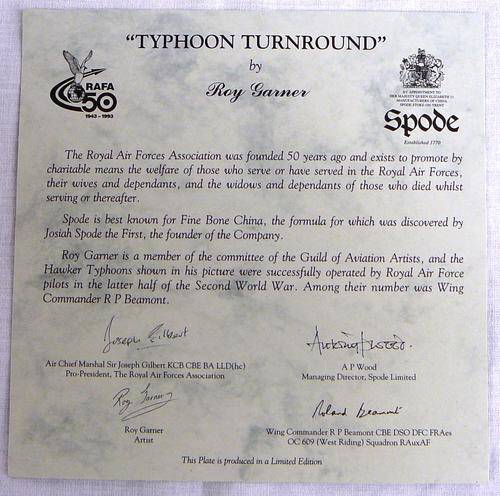 This Spode Collectors Plate was made to commemorate 50 Years of the Royal Air Force Association. It is in excellent condition and is complete with the original box and certificate. It is 228 mm in diameter and weighs 339 grams (478 grams inc box).