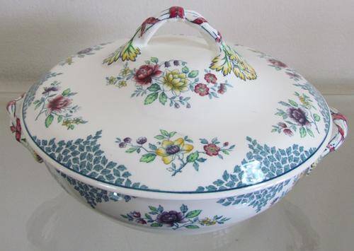 A SET OF 6 Bread / side Plates, 6 Entree/Fish Plates, 6 Soup / Porridge / Cereal Bowls, 6 Dinner Plates, 6 Dessert Bowls, 1 x Gravy Boat & underplate, 2 Tureens with 2 Lids, 1 Large Serving Platter & 1 medium Serving Platter (total includes lids), 1 Salad Serving Bowl.