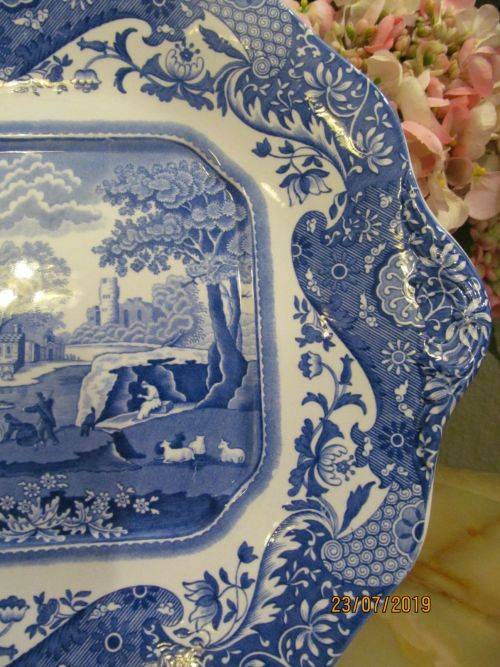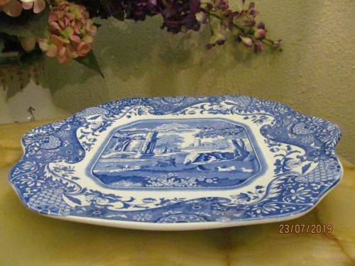 VINTAGE SPODE COLLECTABLE ITALIAN BLUE DESIGN FINE PORCELAIN CAKE PLATE - C.1816 L (THE ORIGINAL SPODE FROM WHICH THIS SPODE ITEM IS A RE-RELEASE)