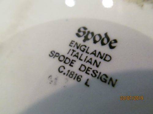 STAMPS/MARKS ETC : THE CAKE PLATE IS STAMPED UNDERNEATH - "SPODE, ENGLAND, ITALIAN, SPODE DESIGN C.1816, L"