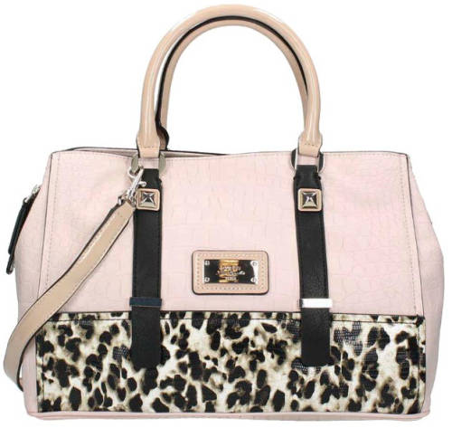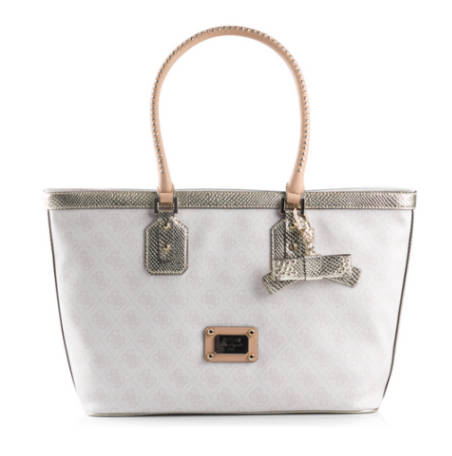 Guess Park Lanehas officially arrived. Complete with a structured design, Quattro G logo print and laser-cut details, it’s an essential you’ll wear every single day. Quattro G logo-print faux-leather exterior with metallic laser-cut design. Pale gold-tone hardware. Vachetta and python-embossed trim. Front patch with script logo emblem and stud detail. Removable Quattro G logo charm. Top zipper closure. Interior zipper pocket, cell phone pocket and two additional multipurpose pockets Dual top handles .Removable, adjustable cross-body strap with 57cm drop. Leopard-print lining