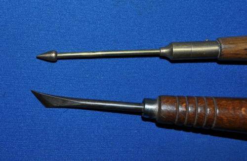 The shave shows its age and has some paint drips on the one handle. Condition good. Stamped with the manufacturer's logo.