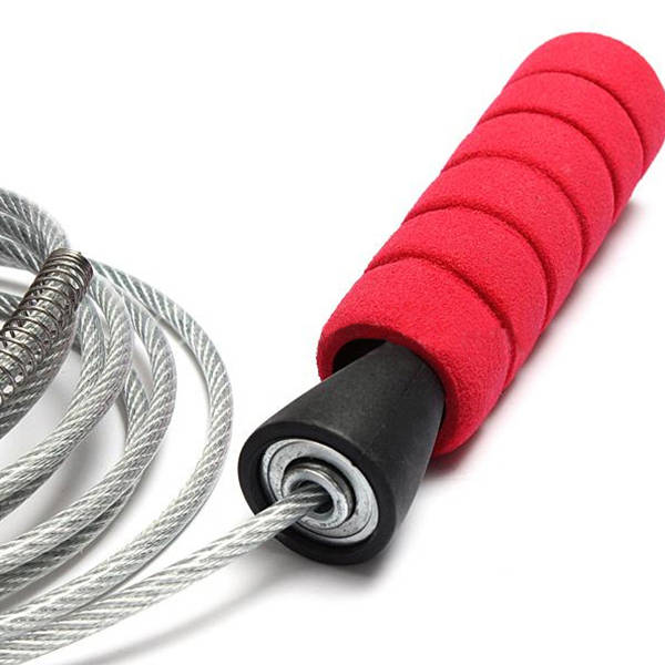 Specification: Material: PP, foam, Steel wire (outer add rust coated ) Color: Red Rope Length: About 2.8M Description: PP coated steel cable for tangle excelent steel cord. Ball bearing for twist-excelent action. No-slip grip ergonomic handles for superior comfort. Easy swivel design for unrestricted rope movement. It can steady body gravity, and can make muscles are more strong. Can make you more muscles coordination. Develop speed, quickness, coordination and agility. Jumping rope can promote the healthy development of children, suitable for home leisure exercise. Package Includes: 1X Steel Skipping Rope