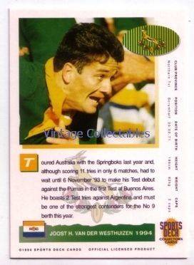 SPRINGBOKS 1994 Rugby Card - JOOST VAN DER WESTHUIZEN - 20/90