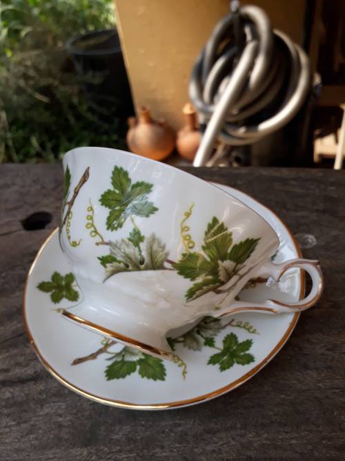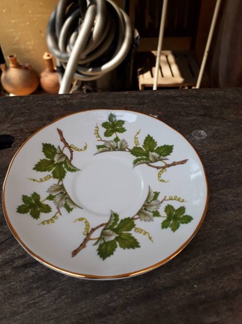 5.6cm, length across incl handle 12.5cm. The saucer diameter 14cm
