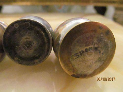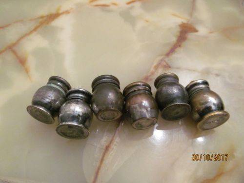CONDITION : TWO HAVE LOST PLATING WHICH NOW SHOW A BRASS COLOR, WHILE EACH OF THE SIX HAVE AGE RELATED VINTAGE PATINA REQUIRING A POLISH. ASIDE FROM THIS THEY ARE ALL IN PERFECT CONDITION WITH NO DENTS, DAMAGES OR RUST