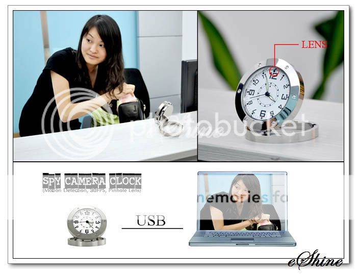 This product is a 30-frame (640*480) pinhole lens spy camera clock with external TF Card memory and a new high-tech multi-functional product integrating video making, sound recording, photo shooting, motion detecting, analog clock and storage.