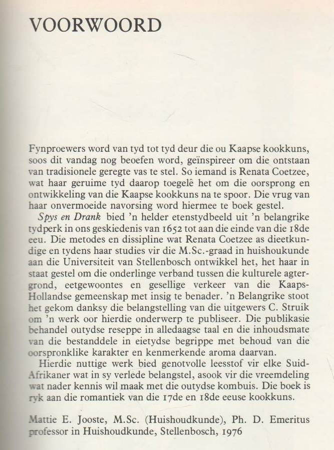 DIE ONTSTAAN VAN DIE AFRIKAANSE EETKULTUUR GEDURENDE DIE 17 DE EN 18 DE EEU, MET 167 RESEPPE VAN TRADISIONELE GEREGTE. KLEURFOTOGRAFIE DEUR VOLKER MIROS! DIE BUITEBORDE TOON RAKSLYTASIE, MAAR ANDERSINS PRAGTIG!