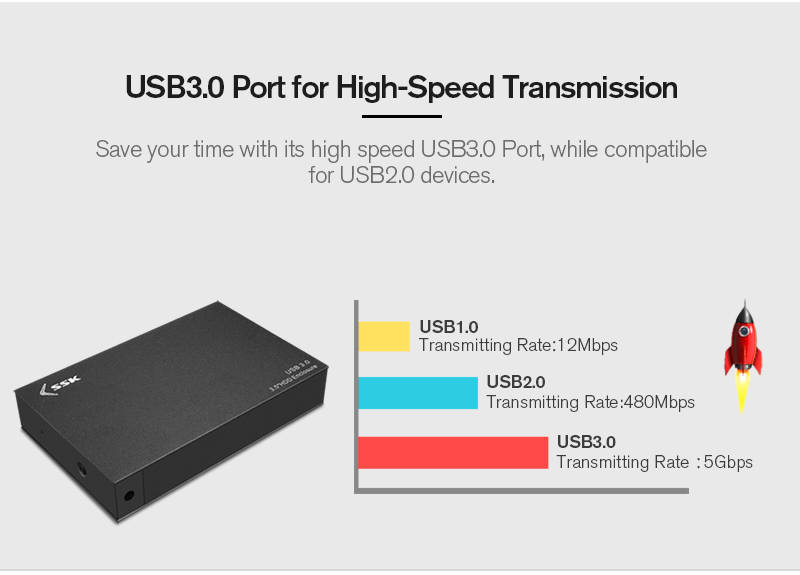 SSK HE-G3000 High Speed USB 3.0 to SATA 3.5inch HDD SSD Hard Drive Hard Disk Enclosure