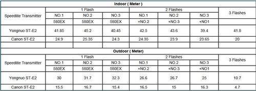 The Remote distance: the comparation between YONGNUO ST-E2 and Canon ST-E2 is below: