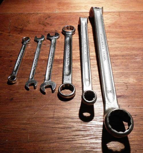 Assorted Metric size spanners, some box and other open ended, with sizes as follows: