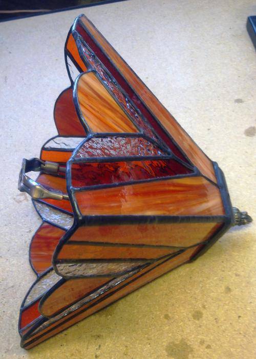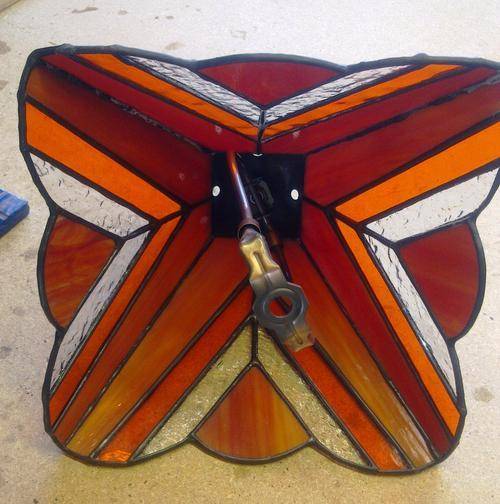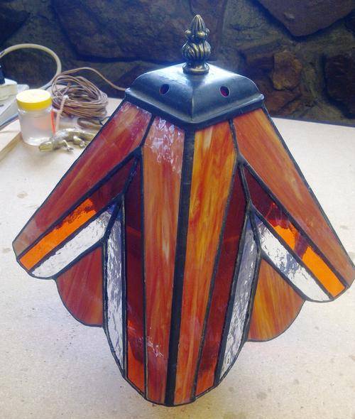 Hand Made 4 Sided Stained Glass Lampshade, burnt oranges Height 240mm Diameter 210mm - Includes the Harp. No Lamp Stand. Price R450.00 and also add R65 for packing and postage within Johannesburg area.