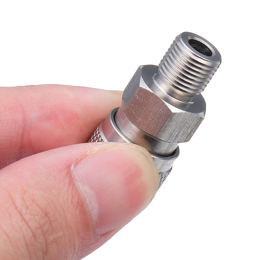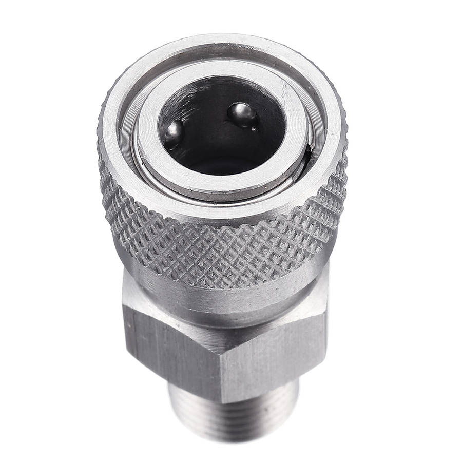 Description: Material: Stainless steel Max working pressure: 400 Bar Size: 1/8 BSPP Features: - All components are CNC machined in stainless steel for maximum reliability, strength on the thread & wear resistance on moving parts. - Stronger than some other plugs, as they made from 14mm Hex Bar, this also provides a larger sealing area for the bonded seal. - Standard 1/8 BSPP size for Paint ball or for PCP Air Rifles - Female socket fitting supplied with 1/8 BSPP male thread with an internal cone for a good sealing connection to a micro bore fill hose with swivelling nut. - Bonded seals provided for male end to fit with BSA R10 or HW100 probe and S310 and Falcon Air air cylinder - Can be used between micro bore hose and SCUBA cylinder charging fitting - Spare o ring for inside Quick release. - Compatible with others on the market. Package included:1 X 1/8 BSPP Quick Release Coupler3 X PlugsNotice: 1. Please allow a bit error due to manual measurement. please make sure you do not mind before you bid. 2. The color may have different as the difference display, pls understand. More Details: