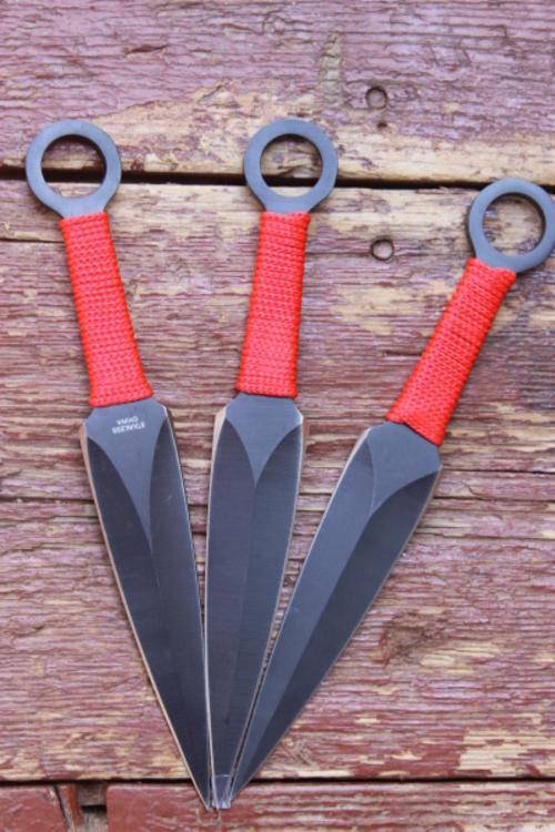 STAINLESS NINJA 3 KNIVES - RED WITH POUCH *** *COMBINE ITEMS AND SAVE ON SHIPPING COSTS***