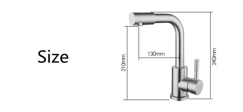 Specification: Material: Stainless steel Number of Handles: Single Faucet Mount: Single hole 360ᆪ Rotate: Yes Installation Method: Deck-mounted aaHot and Cold Water: Support Installation Hole Diameter: Dia. 32mm-38mm aHeight: 240mm