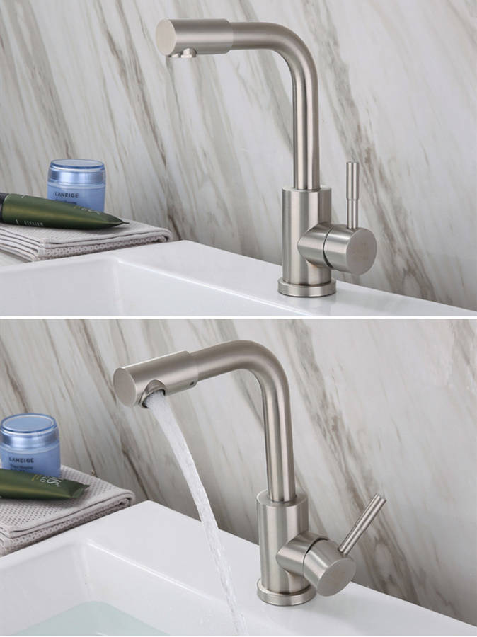 aAdvantages of stainless steel faucet: (1) The stainless steel material does not contain Pb, and it is one of the safe materials for human body. (2) The body of the stainless steel faucet is produced by a precision casting process. The internal and external surfaces of the product are smooth and delicate, and there is no hidden danger to health and safety. (3) All bodies are corrosion-resistant and do not require electroplating. (4) All production processes are environmentally friendly and there is no environmental impact. (5) As long as new, there is no abrasion or shedding of the plating layer.