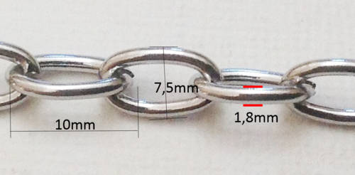 Stainless Steel Cable Link Chain, oval chain, 304 steel, 10x7.5x1.8mm